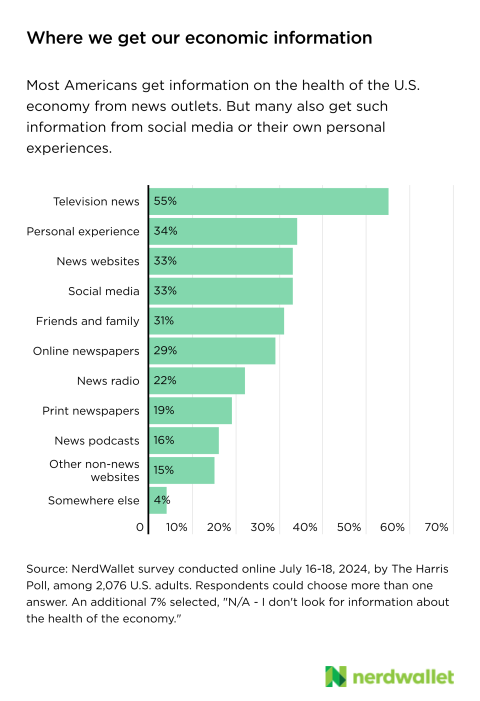 Indeed, there is evidence people judge the health of the overall economy based on their own, potentially unique, experiences. When asked in our July survey where they get information about the health of the U.S. economy, 34% of Americans cited “personal experience” among their answers — it was one of the most cited sources of economic information.