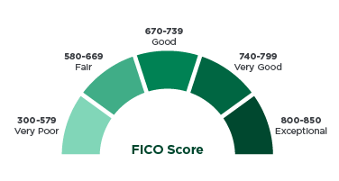 There are five ranges that make up FICO scores. A good FICO score sits somewhere in the 670 to 739 range. Here are the other FICO score ranges: