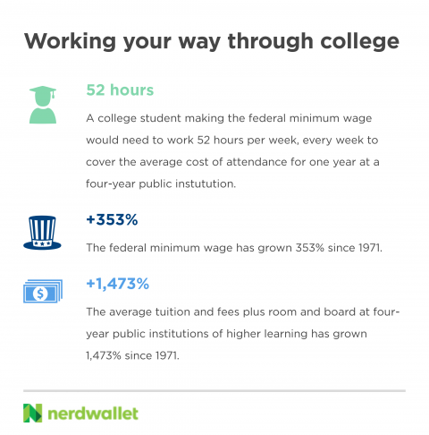 Reliance on student loans has been increasing since their creation in the 1960s. Today, college graduates who borrow can expect to leave school with close to $30,000 in student loan debt, according to The Institute for College Access and Success. And while working a part-time job may help reduce that burden, it’s unlikely — if not impossible — that it would entirely eliminate it. In fact, in order to cover the price of their education, they’d need to either find a job paying well over the national minimum wage or put in an unrealistic number of hours.