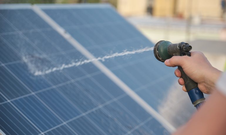 You may want to turn off the solar panel system during cleaning, particularly if you’re using a solar squeegee. This may avoid partial-shade issues.