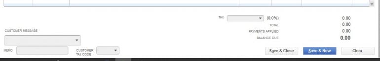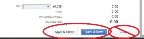 8. QuickBooks Desktop performs all the calculations on your invoice for you, but it’s a good idea to do a quick spot-check to make sure everything looks correct. Once you are pleased with your invoice, click on either the Save & Close button (will save the invoice and close the invoice window) or the Save & New invoice button (will save the invoice and open a new blank invoice screen). Take care not to click the Clear button, as you will lose all your progress and have to restart the invoice from the beginning.