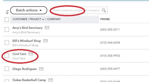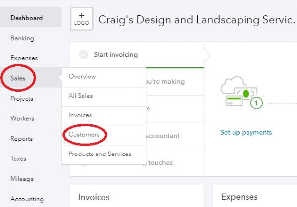 If you are using QuickBooks Online’s progress billing feature, you will want to start your invoicing process from the estimate for the project. The easiest way to get started is by hovering on the “Sales” link in the left toolbar, then clicking on “Customers.”