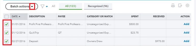 Certain transactions — like checks you’ve written, payments you’ve received from customers and asset purchases — should always be entered into your accounting records when they occur and then “matched” to the transaction in the bank feed when the transaction clears the bank. This will prevent mistakes in your bookkeeping and — especially in the case of checks that haven’t cleared the bank yet — will help you keep tabs on your true available cash balance.