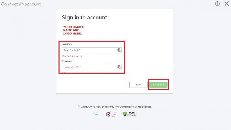 Connecting your bank and credit card accounts in QuickBooks Online is the quickest and most reliable way to import transactions into the Banking feature. It’s also secure; your bank login information is encrypted and protected, meaning no one can access your bank accounts, even if they have access to your QuickBooks Online subscription.