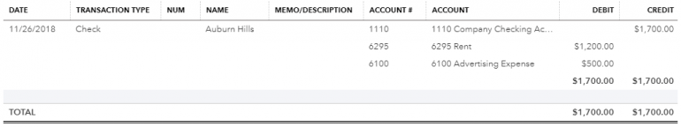 If you save the check, then click on the “More” tab/”Transaction Journal,” here is what this check has done to the general ledger, all just by clicking Save & Close: