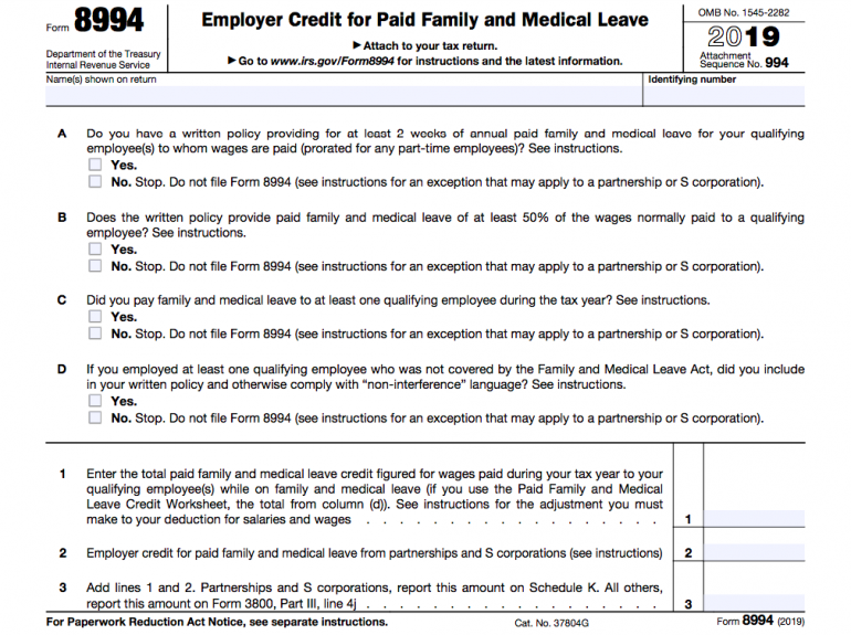 2. Employer Credit for Paid Family and Medical Leave (Form 8994)