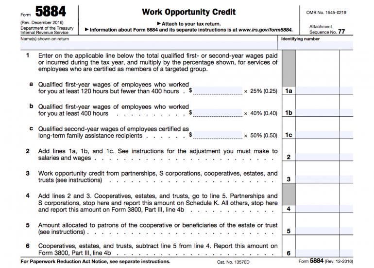 The size of the tax credit depends on which category your employee falls into and how many hours they worked for your company during the tax year. In general, with Form 5884 you can claim a tax credit of 40% of the first $6,000 of the employee’s first-year wages, which equals $2,400. Higher credits are available for companies that employ veterans and long-term family assistance recipients.