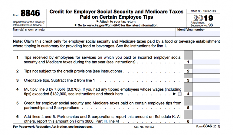 8. Credit for Employer Social Security and Medicare Taxes Paid on Certain Employee Tips (Form 8846)