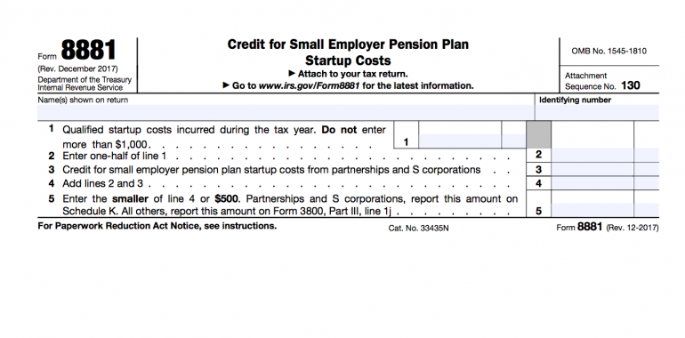 9. Tax Credit for Small Employer Pension Plan Startup Costs and Auto-Enrollment (Form 8881)