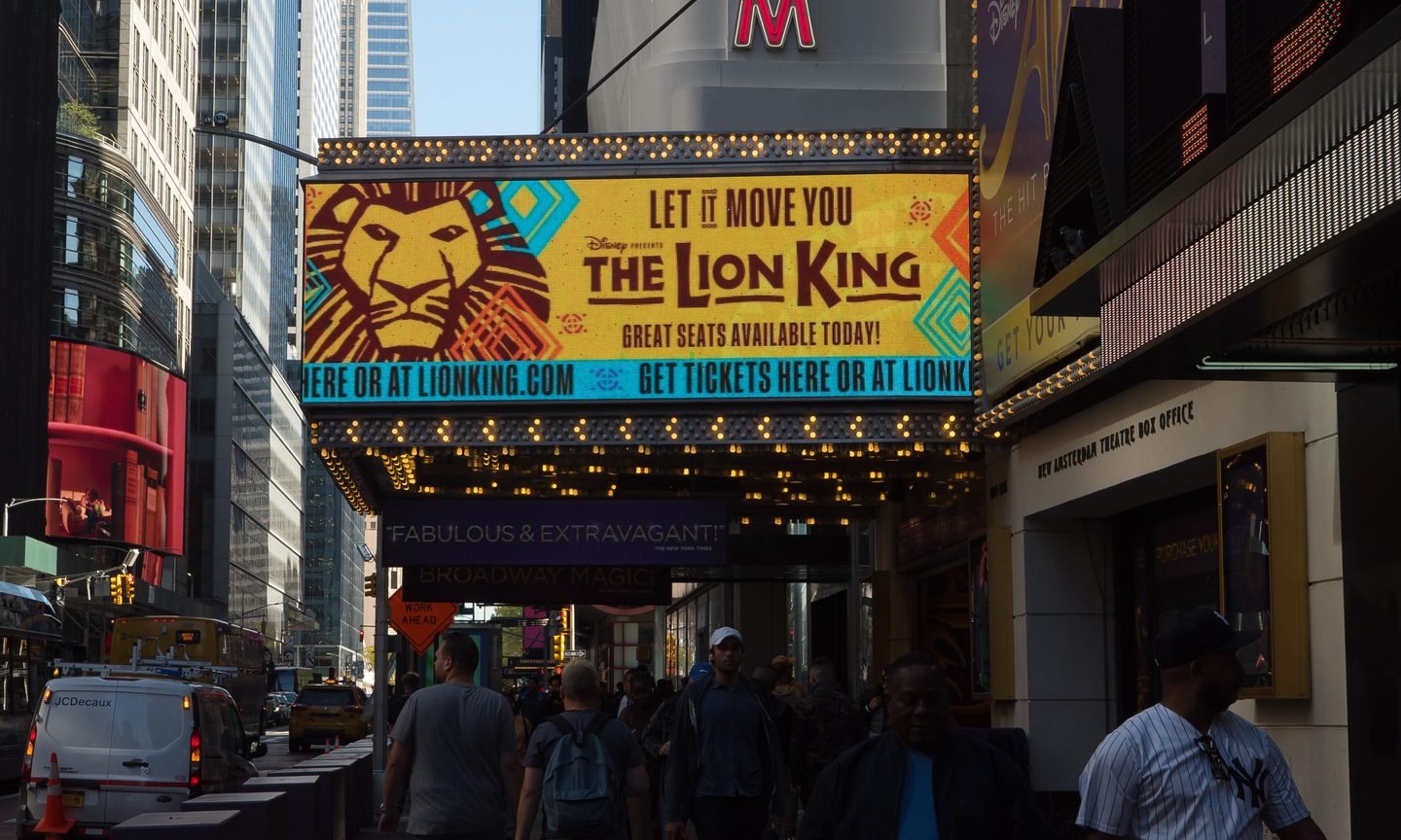 A sign advertising "The Lion King" on 42nd Street in Times Square. (Getty Images)