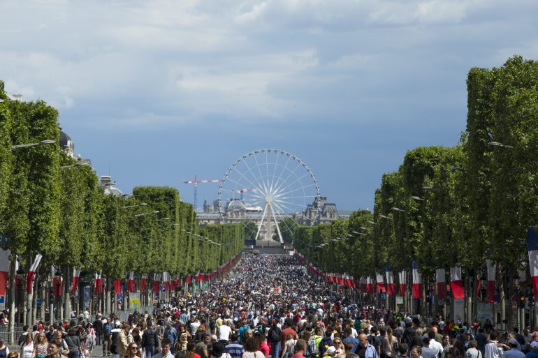 Once the concert is over, fireworks blast off from the Eiffel Tower and the Trocadero gardens. The Parc du Champ-de-Mars, a large public green space running along one side of the tower, offers a wide range of free viewing spots. Many people also book cruises on the Seine to take advantage of more unique views and to avoid the crowds on the ground.