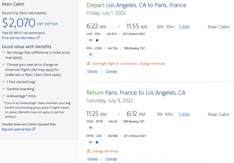 During this time, flights will be at their most expensive. Remember the above example featuring that flight to Paris for $1,255? A similar flight during peak season will cost $2,070 round trip.