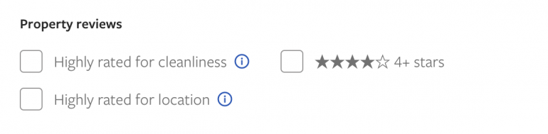 For example, Vrbo lets you filter by user reviews, including properties rated highly for cleanliness and properties rated 4 stars and above.