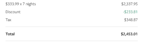 And here’s a Vrbo booking that shows the discount for a weeklong stay.