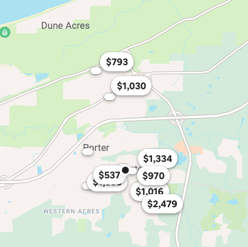For example, an Airbnb search in the tiny town of Chesterton, Indiana, and surrounding towns reveals dozens of listings, with a broad range of accommodation styles and prices.