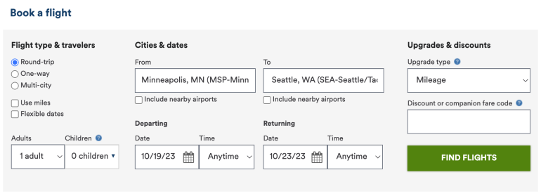 First, click “All search options” when you search for tickets on the Alaska Airlines website. On the advanced booking search page, select “Mileage” as your upgrade type.