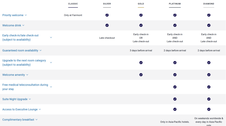 For example, MGallery elite status guests (of any tier except classic) benefit from turndown service, and those at Fairmont can borrow BMW bikes without charge.