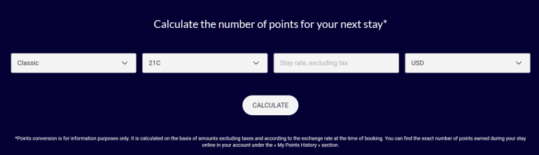 If you’re unclear on how many points you’ll earn at a particular brand, there is a nifty online calculator that can help you determine the amount. Members can also earn points for hotel spending like food and beverage purchases, even when not staying there.