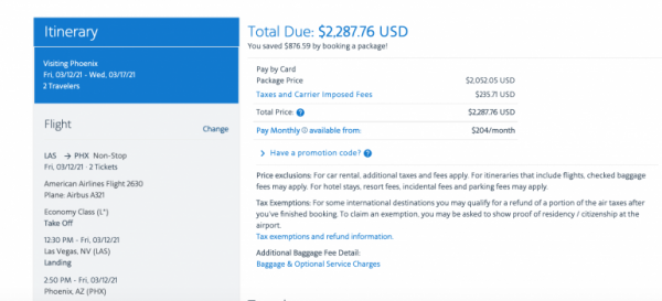 If you add up the flight and hotel individually, you’d spend $1,955, which is $690 more expensive than the package price of $1,265. That's a pretty big savings, and you’d earn AAdvantage miles on top of it.