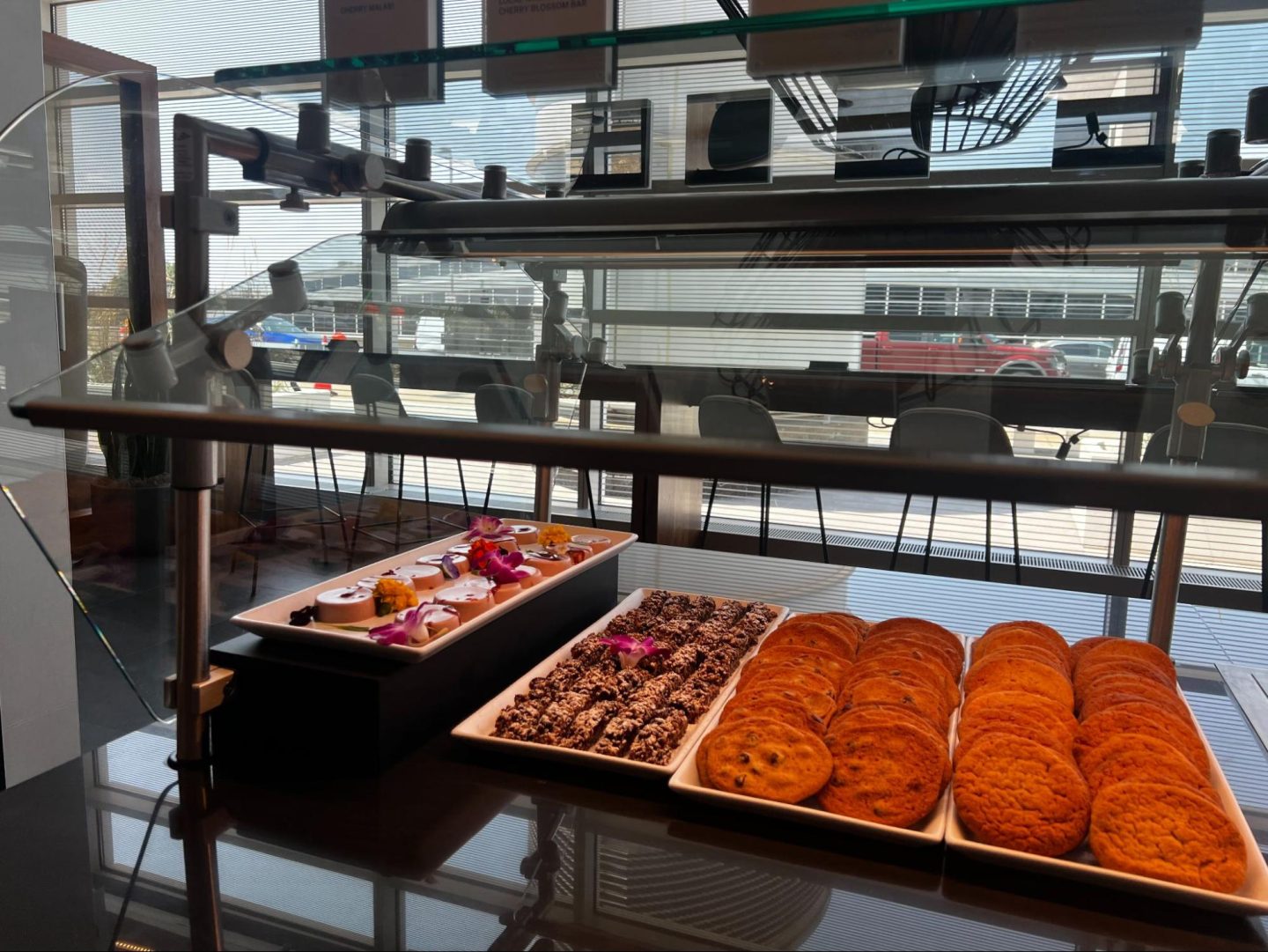 Featured chef selections come self-serve at the DCA lounge, with plenty to peruse from appetizers through desserts. (Photo by Steve Miller)