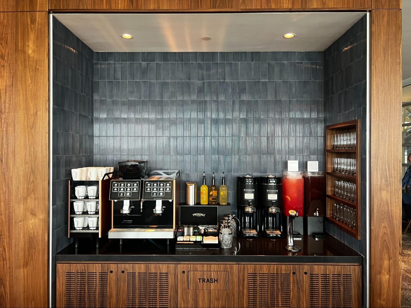 The lounge features three beverage stations, one of which is only available to Centurion® Card guests in their reserved cardholder section.