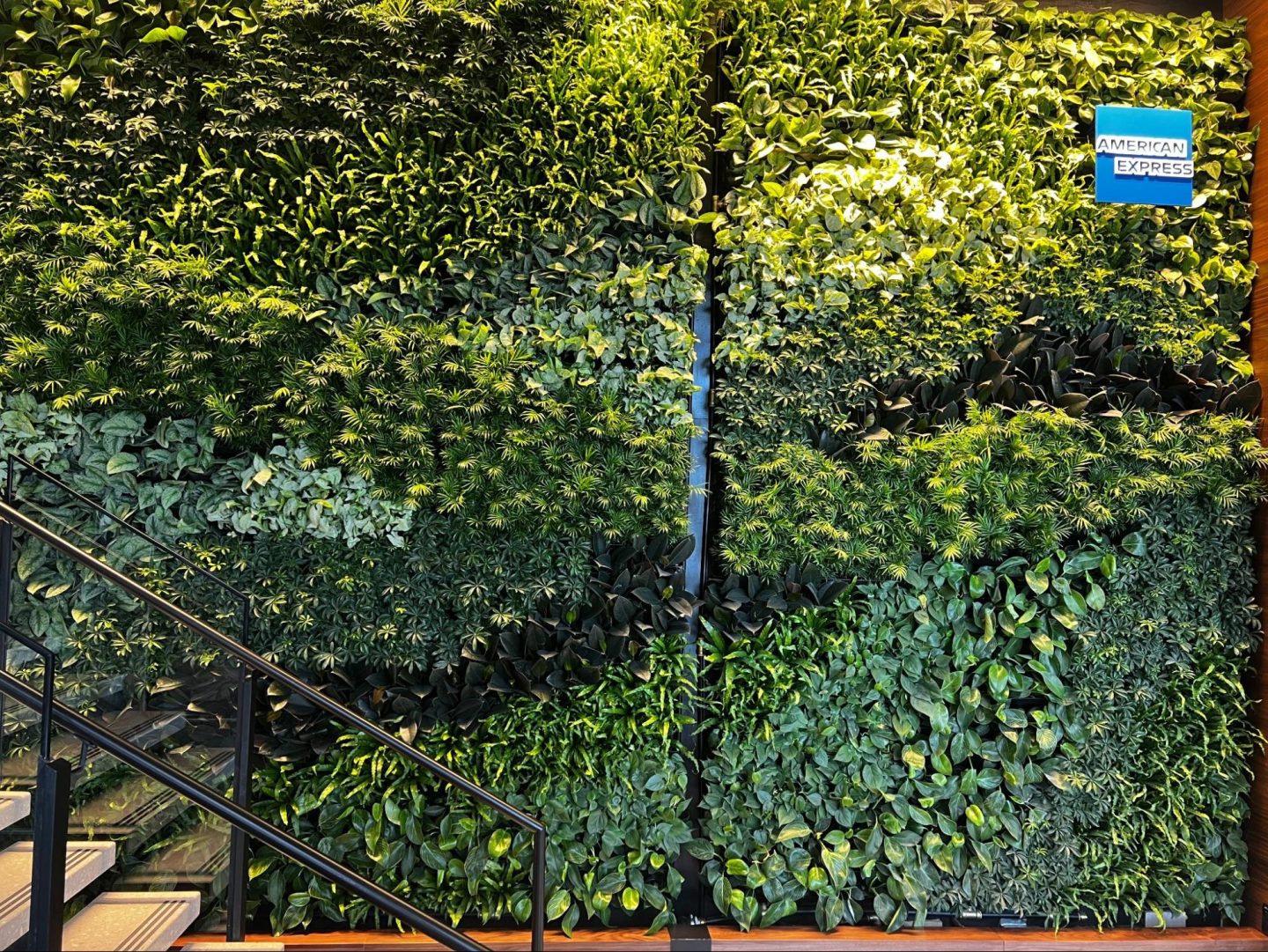 Guests are called into the lounge by a floor-to-ceiling living wall of greenery. Take the stairs or elevator up to the mezzanine level where you can check in at the lounge’s front desk.