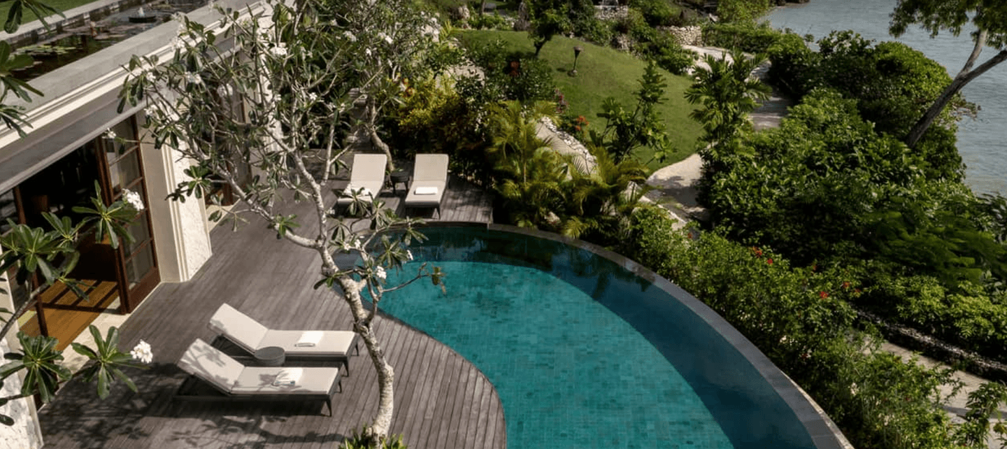 Inspired by a traditional Balinese village, this resort offers oceanfront villas, each with luxurious outdoor living spaces and private pools.
