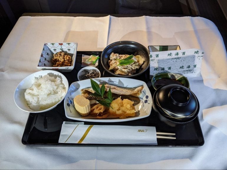 ANA followed these two appetizers with a parade of four more courses. Each was meticulously placed and introduced by the flight attendant.