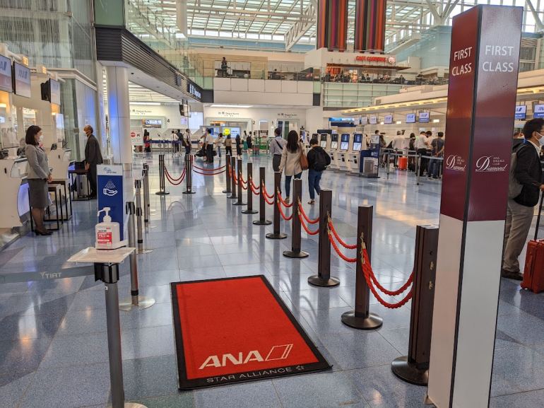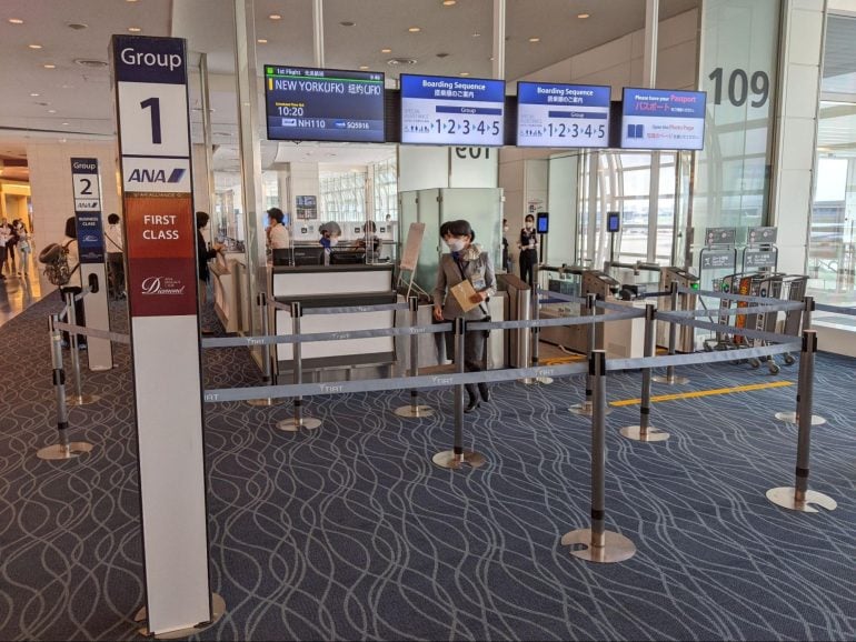 From the airport entrance to the gate, ANA provided a streamlined ground experience. Two first class agents worked as a team to quickly and efficiently check us and our bags into our flight. At the end of the check-in process, an agent stepped over the baggage scale to hand us our passports and explain the boarding time, gate location and lounge access.