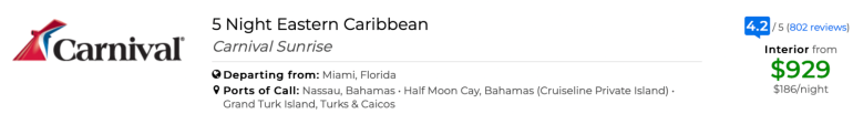 Here’s a look at a five-night Eastern Caribbean cruise from Carnival, which is typically a more budget-friendly cruise line.