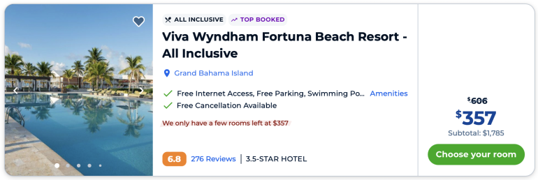 In contrast, here’s a look at the Viva Wyndham Fortuna Beach in the Bahamas:
