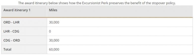 United does allow one-way award travel, but a complimentary stopover comes only with a round trip flight or a combination of three or more one-way flights. Dubbed Excursionist Perk, it has some restrictions, the most important is that its origin and destination must be within a single MileagePlus defined region.