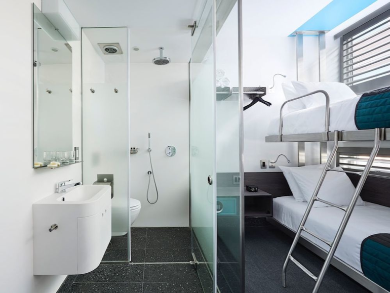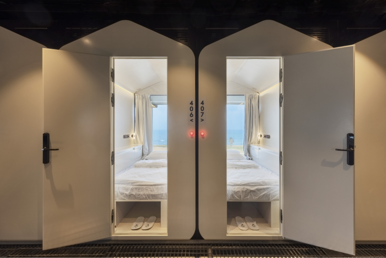 Curious about capsule hotels but wish you had a view? Your wish is granted at The O Pod Hotel in Tel Aviv. Here you can book a capsule hotel bedroom with a view of the Mediterranean Sea. The O Pod Hotel offers a variety of pod sizes, from traditional stacked pods to full-height mini-rooms.