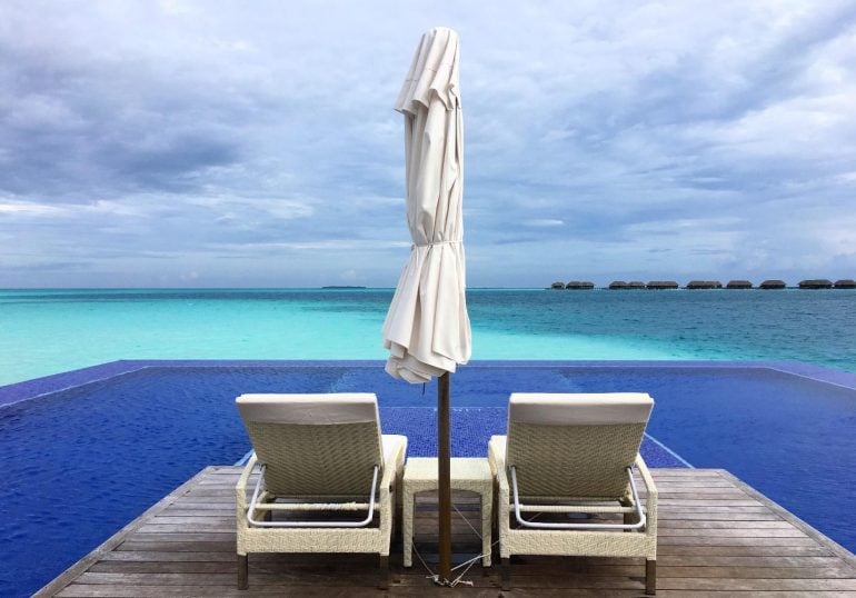 Are you visiting during the rainy season? Before booking your overwater villa, always check to see when the rainy season is and, if possible, try to avoid booking during that time. When I visited the Conrad Maldives Rangali Island in November 2019, it rained nearly the entire time — and although I saved myself from a sunburn, I would have been better off booking during the dry season instead.