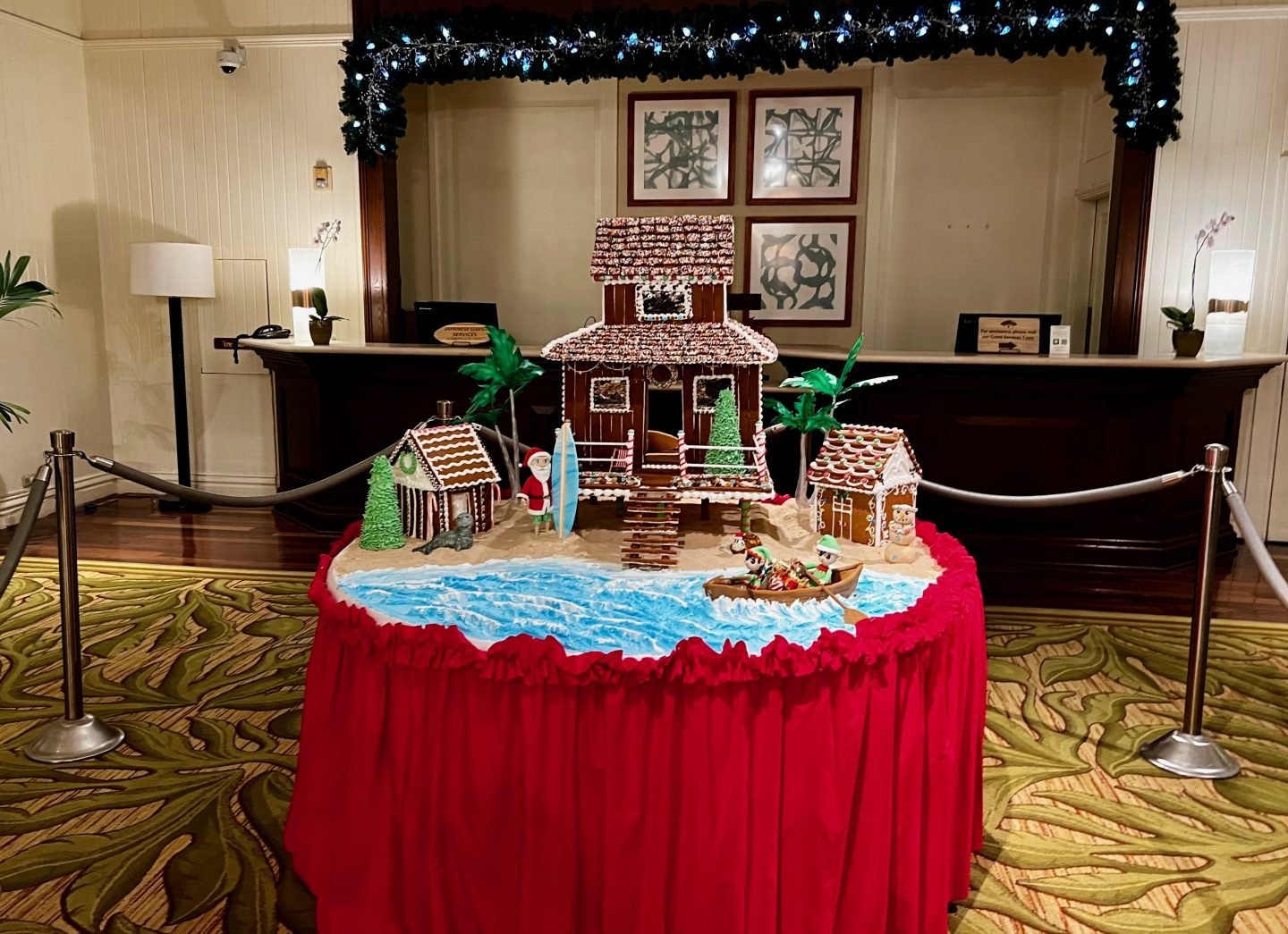 The Moana Surfrider, A Westin Resort & Spa also stands out. The historic property usually offers a Christmas-themed afternoon tea on the veranda. Inside the lobby sits on a massive Christmas tree, a charming Hawaiian-inspired gingerbread house and a place to write letters to Santa.