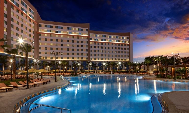 As its name suggests, the Loews Royal Pacific Resort offers a Polynesian-themed environment with palm tree-lined pools, a beach and island-inspired rooms. It may be considered a best Universal Orlando resort for its amenities alone: a lagoon-style pool, spa access and an onsite luau experience. Guests also receive a Universal Express Unlimited pass to avoid lines at Universal Studios Florida and Universal’s Islands of Adventure. You can reach all of the parks by shuttle or water taxi.