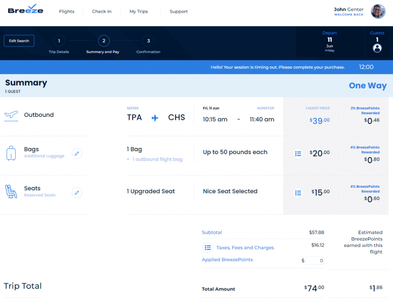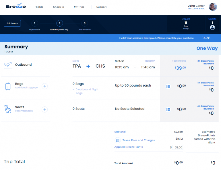Download the app: At the time of writing, Breeze Airways is offering 500 BreezePoints (worth $5) if you download the Breeze Airways app.