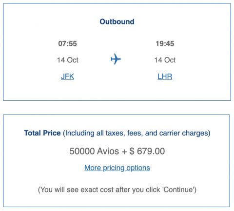 This option to use both points and cash works on all British Airways and American Airlines flights between the U.K. and North America as well as British Airways codeshare flights on partner airlines.