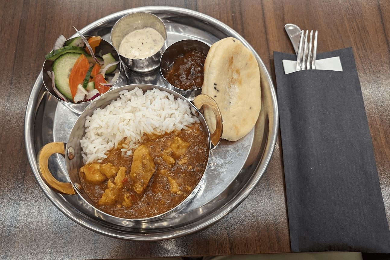 And when we ordered a Chicken Rogan Josh thali main course through the app, an agent delivered the platter of dishes just seven minutes after we ordered.