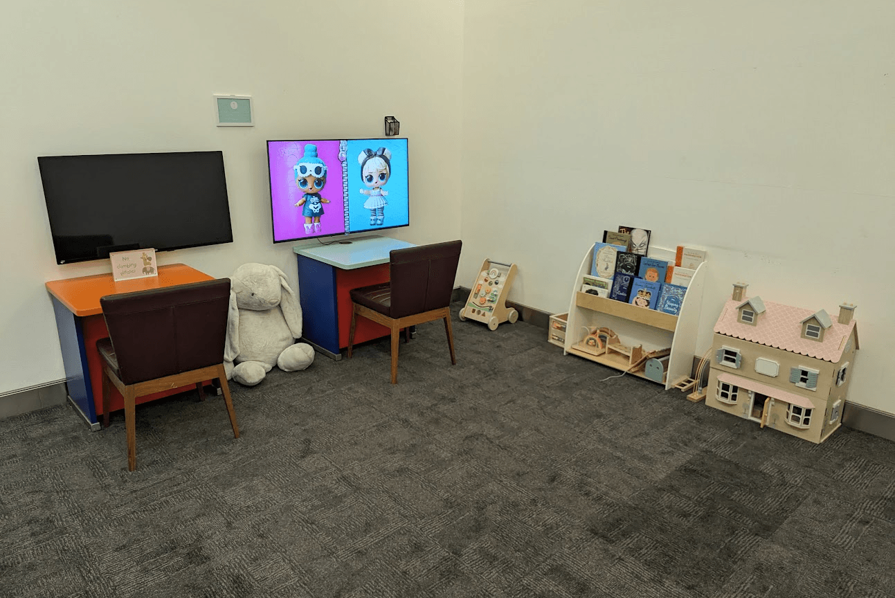 And there are even more zones than what appears on the signage. For example, toward the back of the dining area, the lounge offers a "Kids Zone" room with a couple of televisions and a few toys.