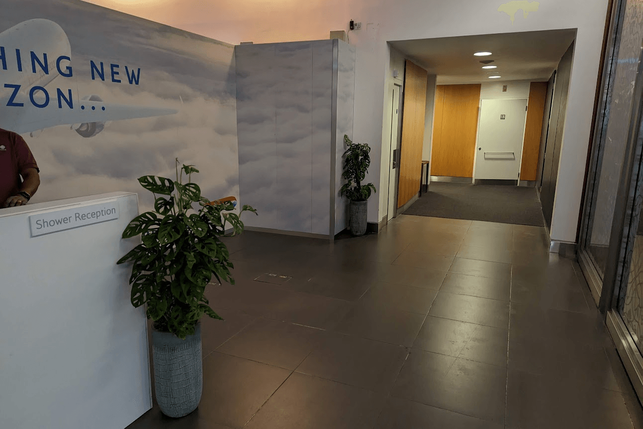 Once you claim an available shower room, you have 10 minutes to get to the shower area — which is outside the lounge near the Concorde Room.