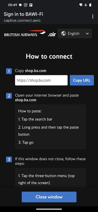 Instead, if you're flying in British Airways first class, simply connect to the BA Wi-Fi network and open shop.ba.com. There, you should see a banner for "Free Wi-Fi if you are flying in first." Click "Connect now" and then enter your seat number and last name in the form to activate your connection.