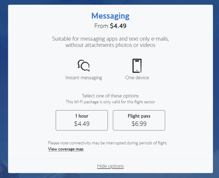Meanwhile, the BA Wi-Fi cost for the slower "Messaging" connection is: