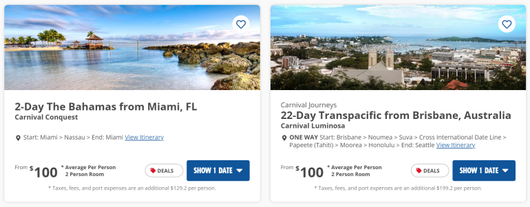 Once you get the right offer, here's where all of that work pays off with a heavily discounted cruise. Click the personalized link in your email to see a list of all of the cruises that are currently on offer.