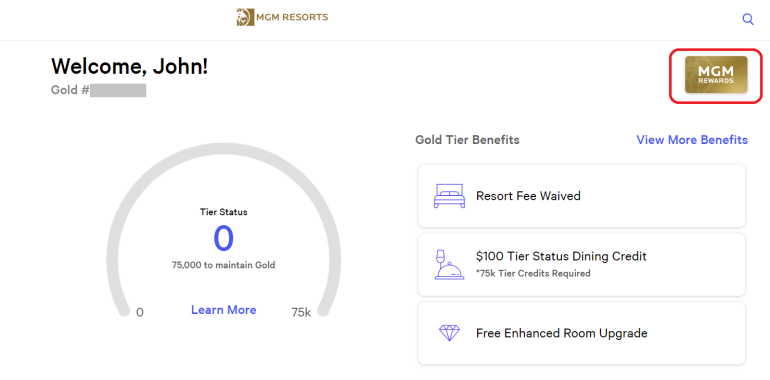 Once you've completed your match, get a copy of your digital card. You get this in your MGM Rewards account dashboard by clicking the "MGM Rewards" card logo.