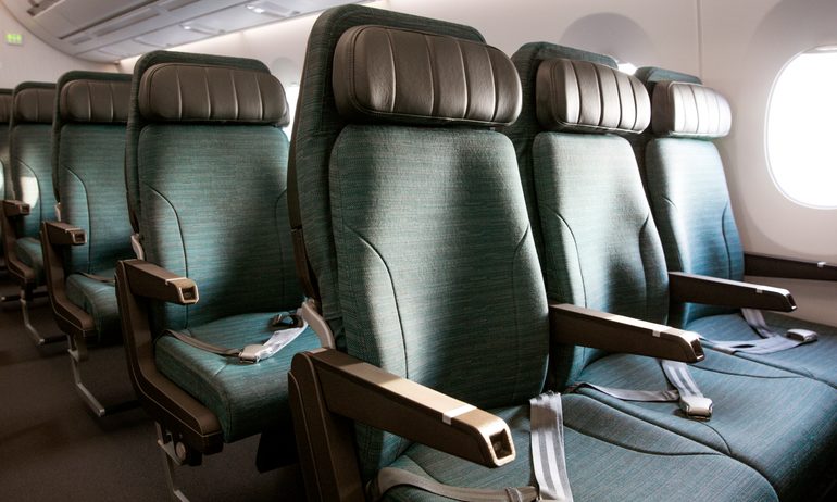 Cathay Pacific economy seats are some of the widest economy seats of any airline; they’re ergonomically designed with an adjustable headrest. You can upgrade to an extra-legroom seat, but it’ll cost you between $45 and $212.