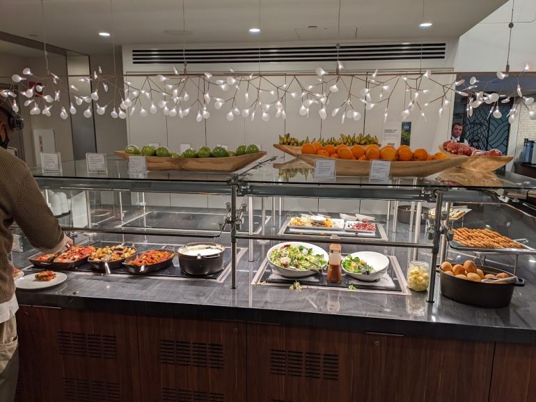 From 11:30 a.m. to 30 minutes before closing, guests can enjoy a hot buffet of a variety of meat-based and vegetarian dishes. However, I found that the selection isn't as comprehensive as at other Centurion Lounge locations.