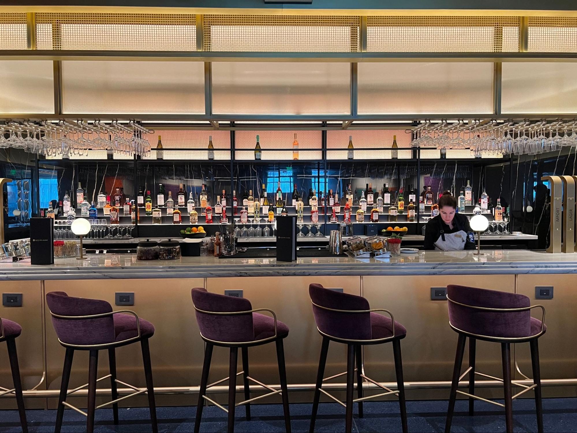 Seating area by the bar at Chase Sapphire PHL. (Photo by Benjamin Din)
