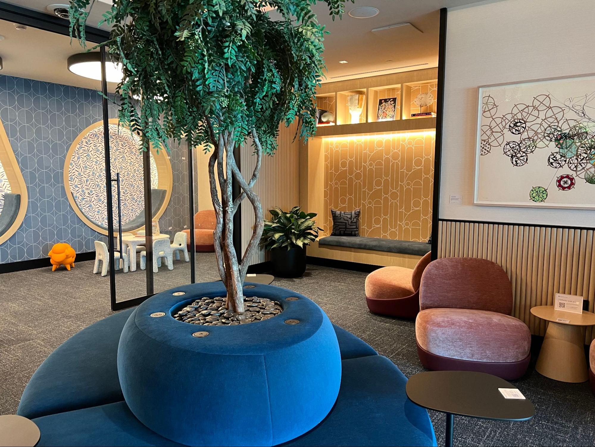 One of the seating areas at Chase Sapphire PHL. (Photo by Benjamin Din)