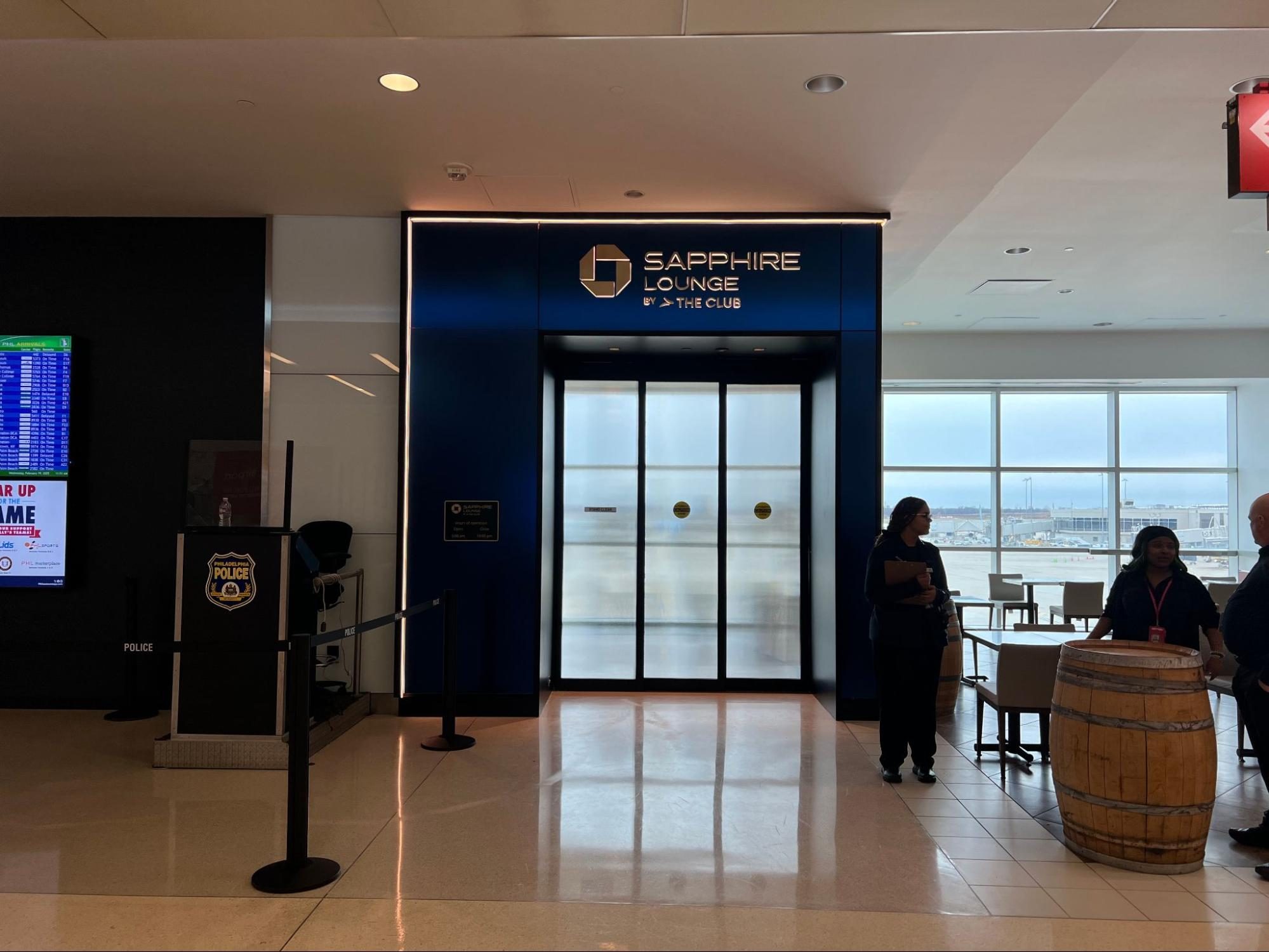 The entrance to Chase Sapphire PHL is directly across from a security checkpoint. (Photo by Benjamin Din)